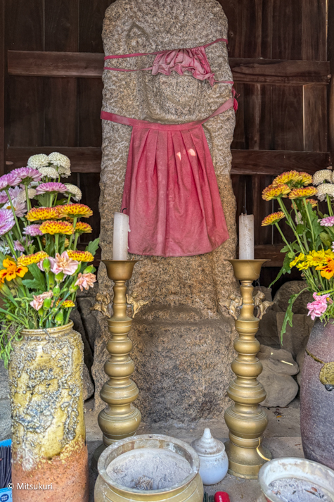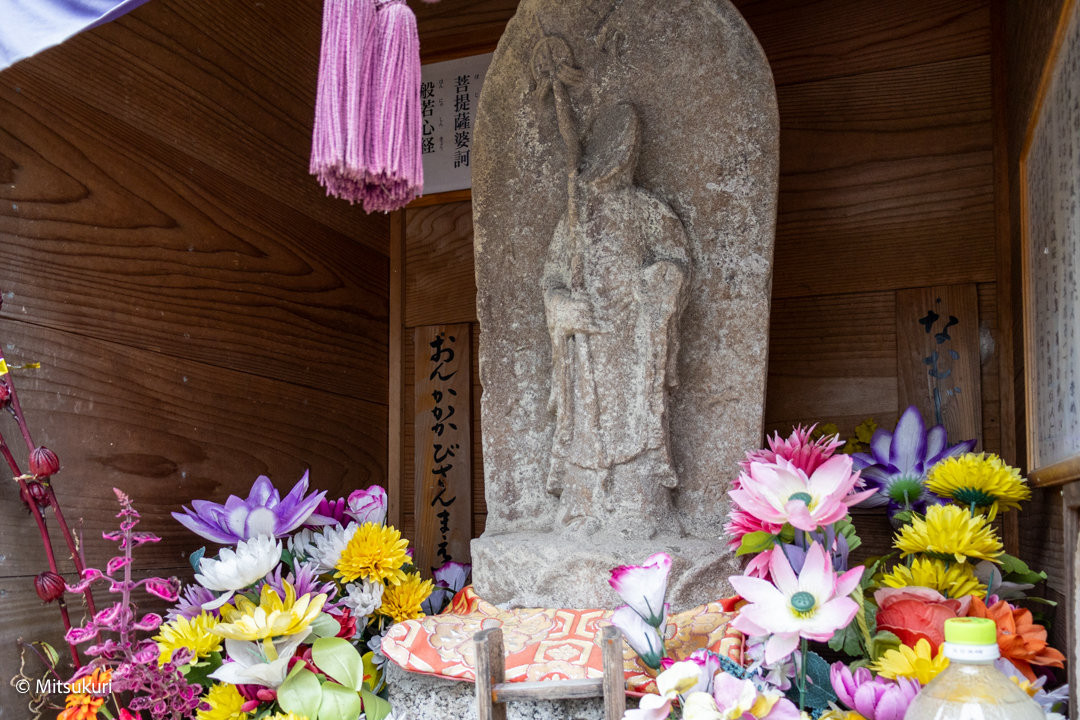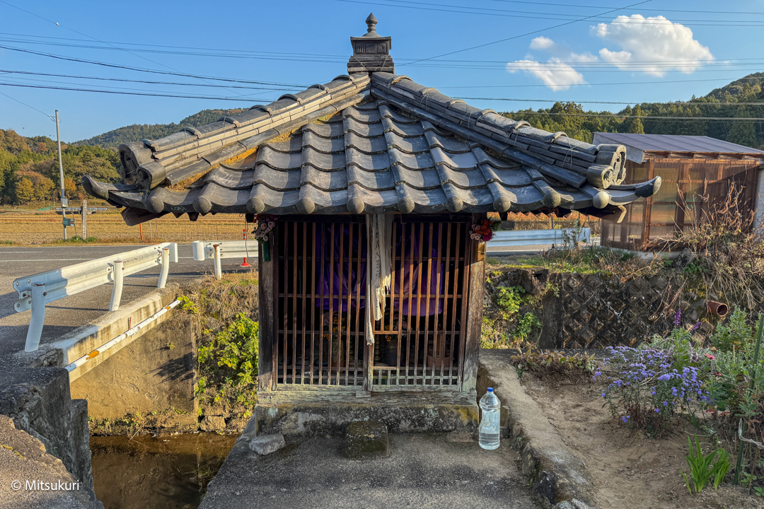 子もうけ地蔵 津市美里町日南田 津市 2025.12.29 日南田には磨崖の「六体地蔵」と「七体地蔵」とがあって 何度か来ているのですが こちらの「子もうけ地蔵」さんを訪ねるのは 今日が初めてです 日南田のバス停の西側 高座原川に迫り出すようにして 小さな地蔵堂があります 右手に錫杖を持った 小ぶりな地蔵さんです地蔵堂と高座原川を挟んで東側の田んぼのあるあたりは「地蔵前」と呼ばれるそうですから このあたりでは 誰もが知っている地蔵さんなのだろうとおもいます 今年2025年の更新は 今日一回きりでした来年はもう少し 出歩いてみたいのですが
