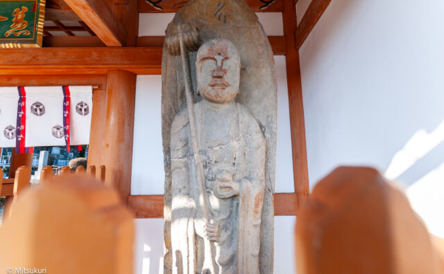 南北朝時代 津市白山町の倭交差点からすぐのところに真光寺というお寺があります 今では無住のようで地区の公民館が併設されています 墓地に並んんだ六地蔵さんの隣に南北朝時代の地蔵立像が残されています 1mほどの砂岩の石柱に上部を弧状にした龕部を...